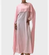 Abaya larga de estilo elegante y sofisticado, confeccionada en tejido fluido y ligero que garantiza comodidad y una caída natural. Presenta escote en pico con delicado bordado dorado y mangas amplias tipo murciélago, ideal para ocasiones especiales o un uso diario elegante de talles diferentes.